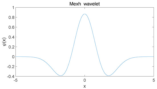 where denotes the scale change, and denotes the displacement change. When the Mexh wavelet satisfies the constraints, the continuous wavelet transform can be applied to any function, as shown in Equation (3).