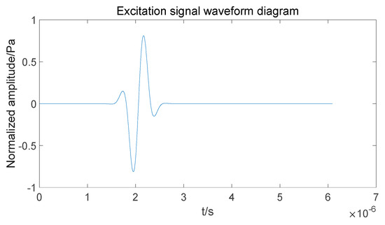 The excitation signal is chosen to use a sinusoidal modulated signal with the mathematical expression shown in Equation (27) and the signal waveform shown in Figure 5.