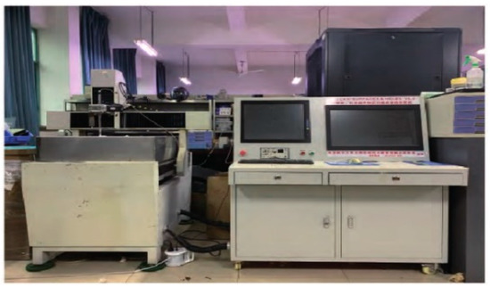 The equipment used in this experiment is UTFSCAN−SURFACES & HOLES V6.0 developed and produced by Nanchang Hangkong University. During the specimen coating thickness inspection, an ultrasonic probe with a center frequency of 10 MHz was chosen, and the test block was inspected at multiple locations using the water immersion ultrasonic inspection method; the physical diagram of the experimental platform is shown in Figure 11. The left side of the figure shows the mechanical transmission device and the ultrasonic signal transmitting and receiving device, and the right side shows the control and processing system. After the control system issues the sweep command, the transmission device drives the signal transmitting receiver to detect and sample the specimen and then uploads the sampling signal to the processing system. The detection signal is received using an acquisition card with a sampling frequency of 200 MHz, and 1642 points are used to reconstruct the echo signal from its single location.