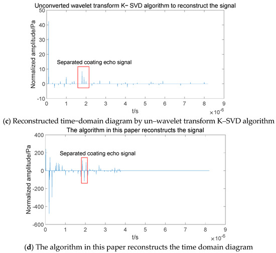 The signal is pre-processed by wavelet transform, and the proposed adaptive feature dictionary and improved K–SVD algorithm are applied to the pre-processed signal to obtain an ultrasonic coating detection signal that successfully separates the overlapped signal, and its explicit steps are described in Figure 3.