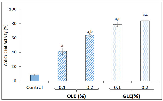 | PEC + OLE 0.2% | 86.92 ± 0.14 A,B | 0.72 ± 0.04 A,B | 3.36 ± 0.29 A,B |