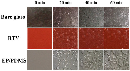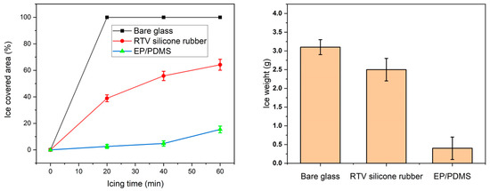 APA StyleZhuang, A., Li, C., Yu, J., & Lu, Y. (2023). The Glaze Icing Performance of a Robust Superhydrophobic Film Composed of Epoxy Resin and Polydimethylsiloxane. Coatings, 13(7), 1271. https://doi.org/10.3390/coatings13071271