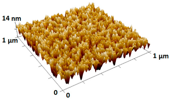 Typical 3D-AFM image of the AlN/Si(111) samples for 1 μm × 1 μm area. The vertical Z-scale (14 nm) is enlarged to highlight the roughness features.