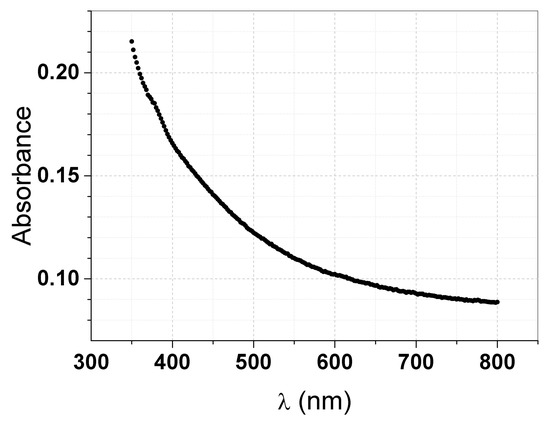 Absorbance of the GO suspension showing a slightly decreasing absorption in the VIS-NIR region.