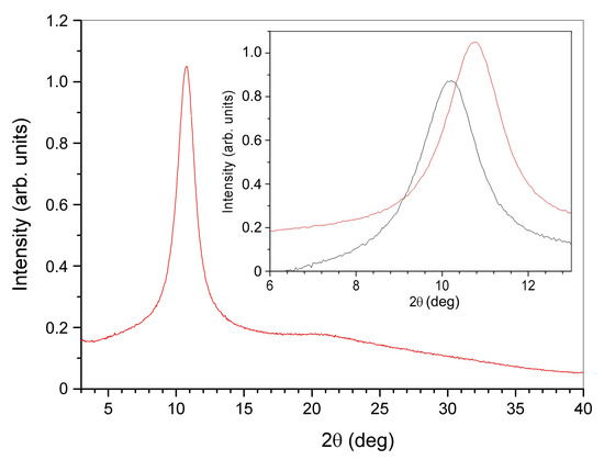 XRD measurements show that the two faces of the film also differ on the molecular length scale (see Figure 8). The diffractogram taken on the opaque upper face is dominated by a peak at 2 = 10.76 deg, characteristic of GO and corresponding to a d-spacing of 8.2 Å, the average distance among stacked GO planes [47]. However, the same measurement taken on the other face of the film shows a shift of the peak to a lower diffraction angle 2 = 10.19 deg, corresponding to a slightly larger d-spacing of 8.7 Å. In both cases, no other peaks are observed, indicating the homogeneous oxidation of the layers (non-oxidized or reduced GO layers would exhibit a significantly smaller d-spacing of 4 Å [45]).