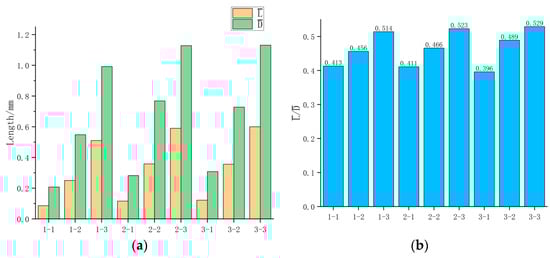 (a) Average width and average spacing of convex strips, (b) Ratio of the average convex strips’ width to the average spacing.
