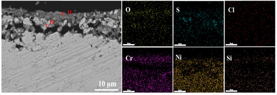 - Liu, C.; Liu, Z.; Gao, Y.; Wang, X.; Zheng, C. Effect of Cr Content on Corrosion Resistance of Ni–XCr–Mo Laser-Cladding Coatings under H2S-Induced High-Temperature Corrosion Atmosphere. Materials 2022, 15, 1885. [Google Scholar] [CrossRef]