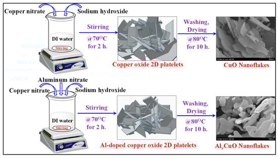 Illustration of the synthesis steps of undoped and Al-doped CuO nanoflakes.