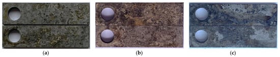 Macroscopic corrosion morphology of materials in liquid environments under different temperatures; (a) 80 °C, (b) 120 °C, (c) 180 °C.