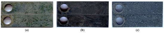 Weight loss tests were conducted in an autoclave to investigate corrosion rate in oilfield formation water. Prior to the weight loss tests, the samples were cleaned with distilled water and acetone, dried, and then weighed using a balance with a precision of 0.1 mg. The weight values were recorded as the original weight (W0i, i = 1, 2, …). After the tests, all samples were taken out and immediately cleaned using distilled water and acetone. Then, the corrosion product scale on the sample’s surface was removed with the film removal solution at room temperature and then rinsed and dried. After that, the samples were weighed again to obtain the final weight. The corrosion rate (Vcorr) was calculated in mm/y (average corrosion thinning depth in years) from the weight loss by using Equation (1) [] as follows: