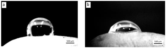 Water apparent contact angles θ were applied to characterize the changes in surface properties. The lying drop method [] was applied using a surface microscope. The values of the wetting angles were determined using the DropSnake—LB-ADSA software package.