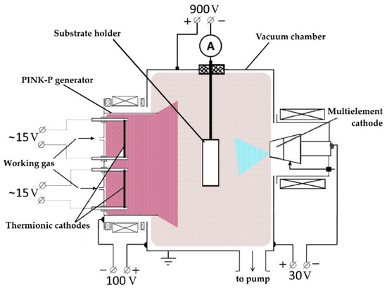 38. Shugurov, V.V.; Koval, N.N.; Krysina, O.V.; A Prokopenko, N. QUINTA equipment for ion-plasma modification of materials and products surface and vacuum arc plasma-assisted deposition of coatings. J. Phys. Conf. Ser. 2019, 1393, 012131. [Google Scholar] [CrossRef]