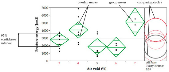 ANOVA and Tukey–Kramer comparison of fracture energy of middle-layer specimens by air void.