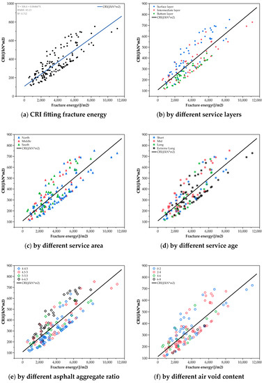 The CRI-fracture energy graph classified by factors is shown in Figure 15 and the FDUR is shown in Table 9.