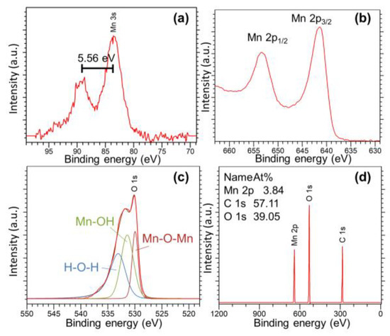 Field emission scanning electron microscopy (FE-SEM) was performed with Schottky FE-SEM SU5000 Hitachi with an accelerating voltage of 5 kV at various magnifications. X-ray photoelectron spectroscopy (XPS) was carried out on Kratos Axis ultra DLD spectrometer. The peak fitting and analysis of XPS data were performed with CasaXPS. The oxidation number of manganese oxides was determined by binding energy difference between Mn 3s multiplet [31].