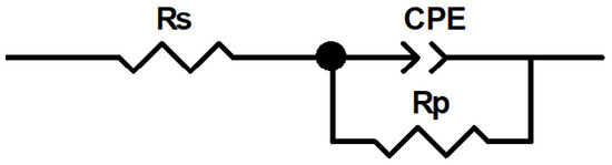 where ω, Q, i, and n are the angular frequency, the proportionality coefficient, the imaginary unit, and the surface irregularity that determine when the imaginary portion of the impedance achieves its greatest value. The values of the constant phase element (CPE, Q:charge and n: surface irregularity), which reflects the capacitance of the electric double layer (Cdl), adsorption inhibitor film, Rs the resistance of the solution, and RP the resistance for polarization are also determined using Equation (12).