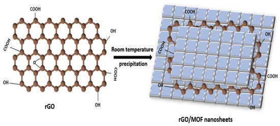 - Hoseinzadeh, H.; Hayati, B.; Ghaheh, F.S.; Seifpanahi-Shabani, K.; Mahmoodi, N.M. Development of room temperature synthesized and functionalized metal-organic framework/graphene oxide composite and pollutant adsorption ability. Mater. Res. Bull. 2021, 142, 111408. [Google Scholar] [CrossRef]