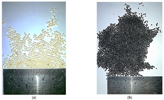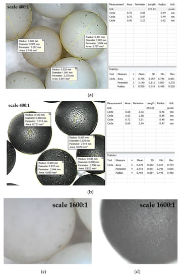where d—diameter of granules, m; h—thickness of the pyrocarbon coating, m; ρ0 = 3950 kg/m3—density of Al2O3 granules; and ρc = 1660 kg/m3—density of pyrocarbon coating.