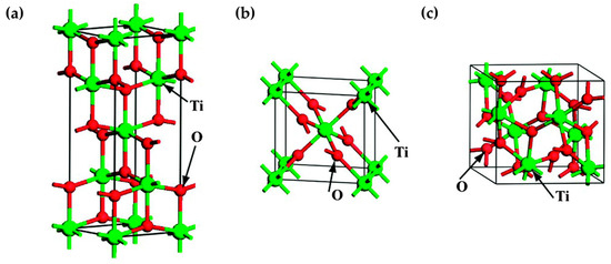 Schematic diagram of regular cells for anatase (a), rutile (b), and brookite (c). Reproduced with permission from [59]. Copyright 2014, Royal Society of Chemistry.