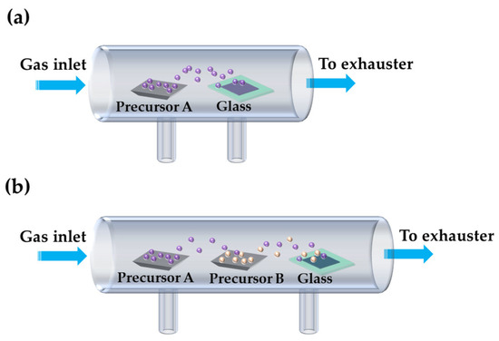 Scheme of the CVD process. (a) single precursor, (b) multiple precursors.