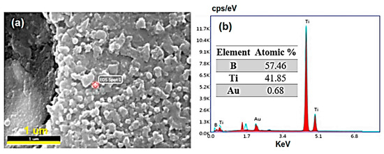 (a) SEM image and (b) EDS spectra showing the presence of TiB2 particles around the pores. Reprinted with permission from Ref. [42] Copyright 2020 Elsevier.