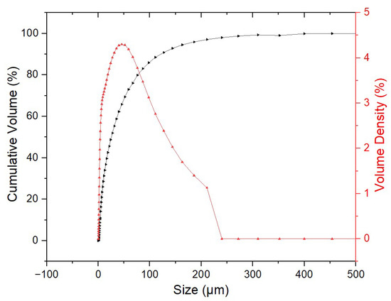 The particle size distribution of the AC, which was essential to determine before utilizing it in particleboard production, is shown in Figure 1.