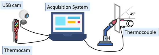 The experimental set-up of the applied “reaction-to-fire” test is schematized in Figure 2, according to the assembly proposed by [23].