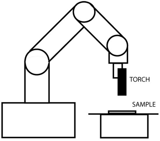 The operating parameters were automatically collected via the control system of the thermal spray equipment. In-flight particle velocity and temperature measurement was performed using a two-wavelength thermal radiation flux sensor called Accurasprey from Tecnar Automation Ltd. (Saint Bruno, QC, Canada) [25,26,27].