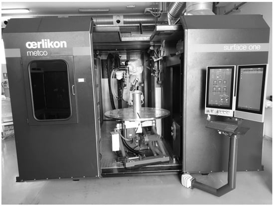 The thermal spraying equipment used was SURFACE ONE from Oerlikon, as shown in Figure 2. This equipment allows APS thermal spraying.