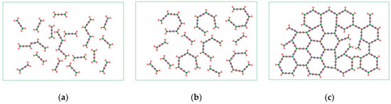 Formation process of thermoset network: (a) formation; (b) branching; (c) crosslinking.