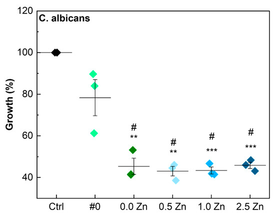 Finally, all the performed MAO treatments were effective against the growth of the C. albicans fungus, and the variation in Zn levels in the used electrolyte solution had no apparent influence on the results.
