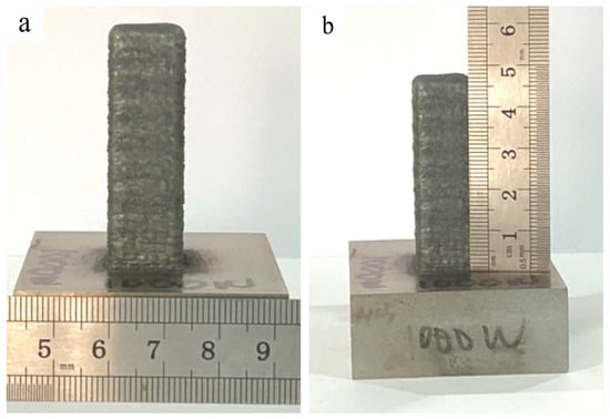 AMed CoCrFeNi HEA bulk specimen: (a) front view and (b) side view.