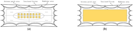 A schematic diagram of the space-tensioned thin-film antenna structure. (a) Radiation layer; (b) grounding layer.