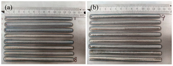 The macro morphology of the cladding layers prepared by the orthogonal experiment is shown in Figure 2 below. On the whole, the cladding layers are well formed.