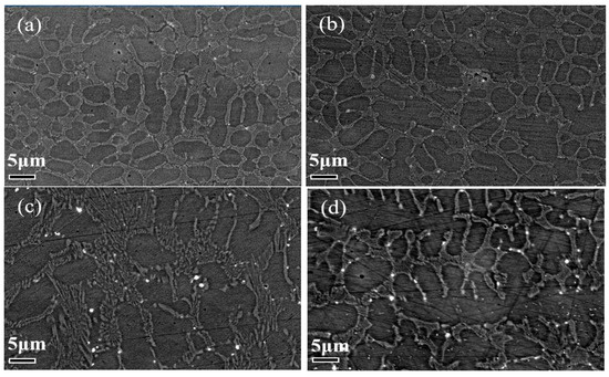 We use back perspective to observe the internal structure of each group of cladding layers. As shown in Figure 8, it can be found that, overall, The internal structure morphology of each group of melt layers is almost the same. The strengthening phase is distributed in the matrix in the form of a network.