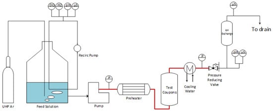 Coupons were inserted on a sample tree composed of pre-oxidized 316 L stainless steel and exposed to the test solutions under the listed conditions in Table 2. The pH (Endress Hauser Ceragel Model CPS71D), conductivity (Endress Hauser Condumax Model CLS21D), and dissolved oxygen concentration (Orbisphere Electrochemical Sensor model 31110.02) of the feed water were monitored, as were the pH and conductivity of the test solution exiting the autoclave.