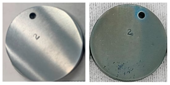 Before the test, the surfaces of the bare (uncoated) coupons were shiny and metallic, while the surfaces of the coated coupons were dull by comparison. After exposure to SCW, the surfaces of the coupons were dulled, with a cloudy appearance characteristic of an oxide film. No sign of spalling was observed on the exposed coupons (see Figure 5).
