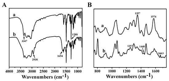 The structure of HBPL was confirmed through 1HNMR spectroscopy, utilizing a Bruker DMX500 (Bruker, Billerica, MA, USA) instrument operating at 500 MHz with D2O as the solvent and tetramethylsilane as the reference compound. Fourier transform infrared (FTIR) spectra were obtained using KBr pellets on a NICOLET6700 instrument (Thermo Fisher Scientific, Waltham, MA, USA). Additionally, the Raman spectra were obtained using a Raman microscope (DXR3, Thermo Fisher Scientific, Waltham, MA, USA) equipped with a 785 nm solid-state laser (20 mW), 50×/0.75 numerical aperture (NA) objective lens, Renishaw CCD detector, and Olympus microscope. Exposure time was 10 s, and spectral resolution was 0.5 cm−1.