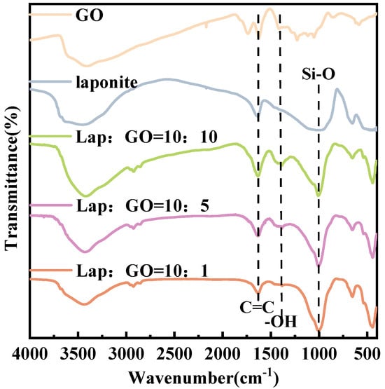 FT-IR spectra of Lap-GO dispersions with different mass ratios.