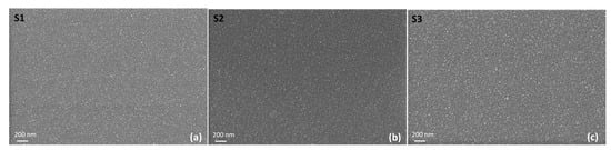In order to understanding the electrocatalytic behavior of the CoPt thin layers, we analyzed the microstructure and the composition of the samples after performing the MOR experiments for 1000 min. The SEM analysis shows that the microstructure of samples S1–S3 does not present visible changes, as can be observed in Figure 7. The EDX measurements carried out on the surface of samples S1–S3 after the MOR experiments show a very small difference of +/−2% in the alloy composition.