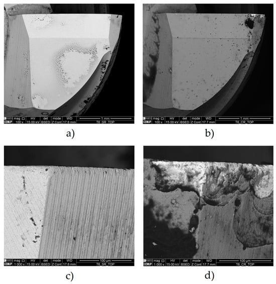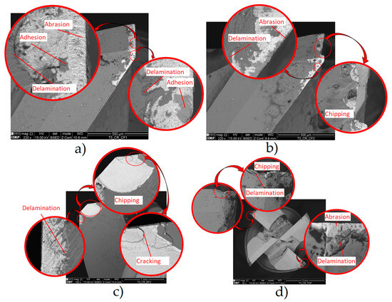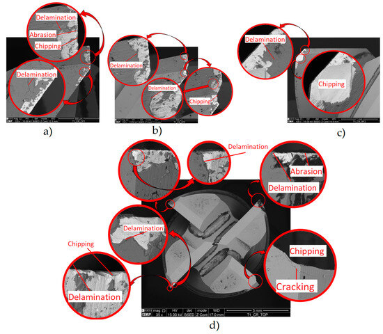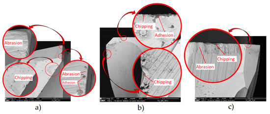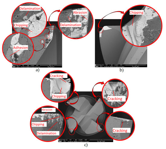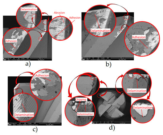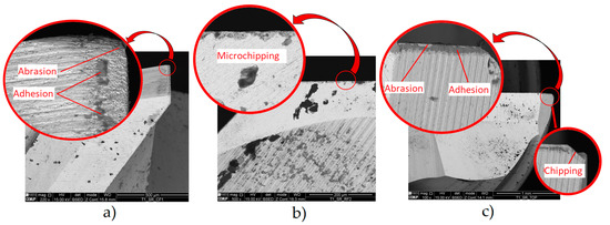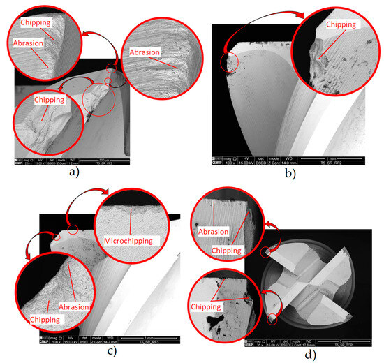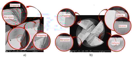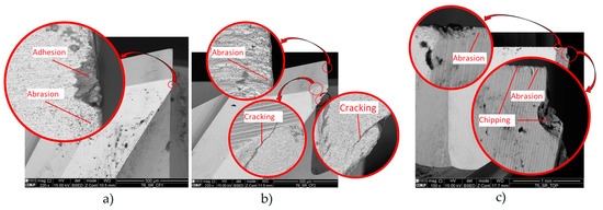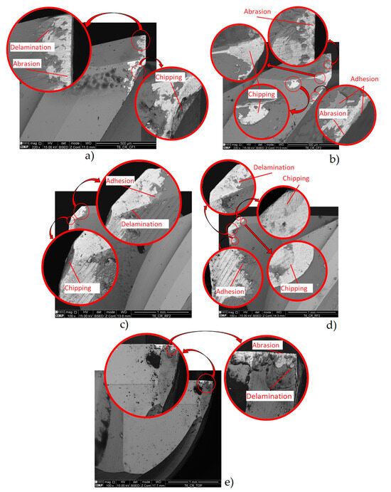 - This is likely due to coating defects, i.e., its rapid degradation during service. The Ra and Ra trends were comparable to those observed in uncoated tools, although with significantly higher values. The roughness and TW were lower for the lower parameters. Thus, the tool with the best roughness and VB values was tool ref. T1L27F750S126, while the least successful tool was ref. T1L27F1500S126. The main wear mechanisms observed were delamination, chipping, and abrasion,