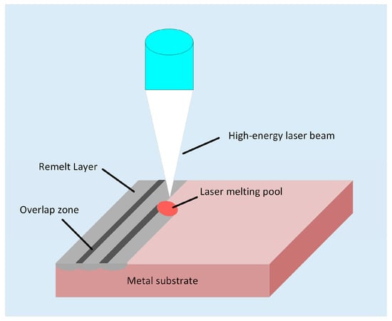 Laser processing is a processing technology that has emerged in recent years. Compared with other surface strengthening methods, using laser technology to treat the material surface can achieve non-contact processing, which has the advantages of small material thermal deformation and high processing efficiency [5,6]. Common laser processing methods include laser shock strengthening, laser surface cladding, etc. For example, Wang et al. [7] and Feng et al. [8], respectively, used laser shock technology to strengthen a copper surface and analyzed the effect of process parameters on the surface hardness of copper. Liu et al. [9] used laser cladding technology to prepare Ni-based anti-friction coatings on copper surfaces in order to reduce friction, and achieved good anti-wear effects.