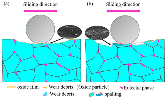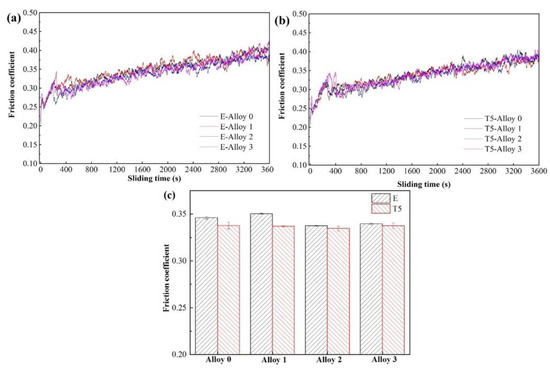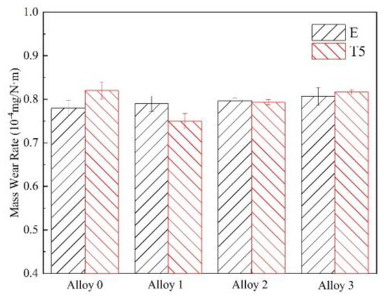 - The wear mechanisms of the E-alloys and T5-alloys are composed of abrasive wear, oxidation wear, and delamination wear. But the wear mechanisms of T5-Alloy 1 are mainly abrasive wear and oxidation wear, which may be related to its lowest wear rate.