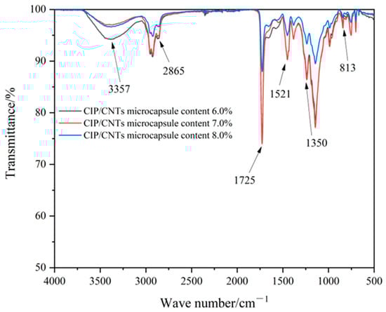 3.6. Infrared Analysis of Blending of Three Types of Microcapsules