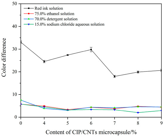 | Content of Shellac Microcapsules (%) | Content of CIP/CNT Microcapsules (%) | L1 | a1 | b1 | L2 | a2 | b2 | ΔL | Δa | Δb | ΔE |