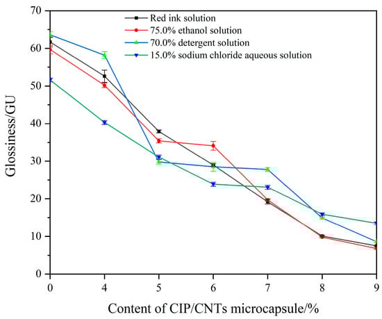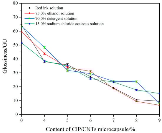 | Content of Shellac Microcapsules (%) | Content of CIP/CNT Microcapsules (%) | 20° Glossiness (GU) | 60° Glossiness (GU) | 85° Glossiness (GU) |
