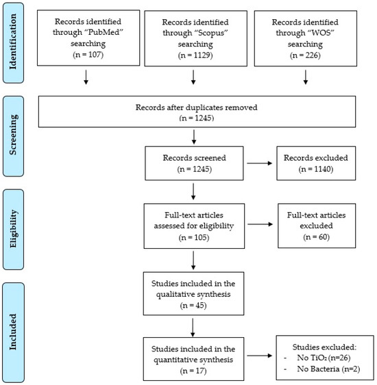 Chicago/Turabian StyleUbaldi, Francesca, Federica Valeriani, Veronica Volpini, Giusy Lofrano, and Vincenzo Romano Spica. 2024. "Antimicrobial Activity of Photocatalytic Coatings on Surfaces: A Systematic Review and Meta-Analysis" Coatings 14, no. 1: 92. https://doi.org/10.3390/coatings14010092
