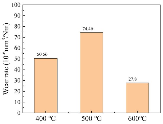 High-Temperature Friction Tests: A constant load of 5 N (corresponding to a contact pressure of 1.6 MPa) and a rotational speed of 2000 rpm (equivalent to a linear velocity of 2.5 m/s) were maintained. The tests were conducted at three temperatures: 400 °C, 500 °C, and 600 °C, each for a duration of 30 min.