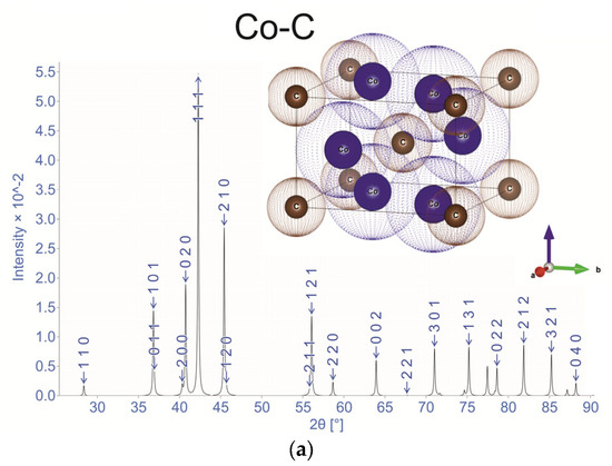 Figure 2 shows the simulated geometry and X-ray spectra of the Co-C structure using the Vesta 3 software program, which is designed for the 3D visualization of structural models and various volumetric data such as electron/nuclear density and crystal morphology.