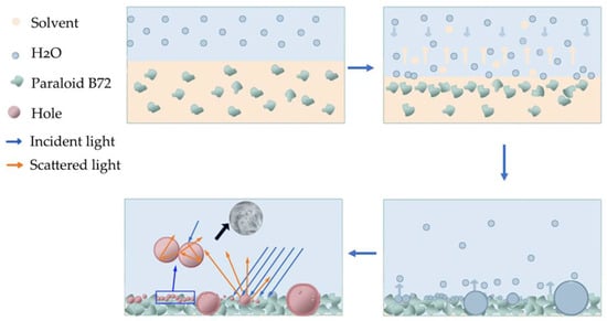 Zhao, X.; Li, X.; Zhang, S.; Niu, Q.; Li, Z.; Xue, C. Investigation of Whitening Mechanism on Cultural Relic Surfaces Treated with Paraloid B72. Coatings 2024, 14, 1240. https://doi.org/10.3390/coatings14101240